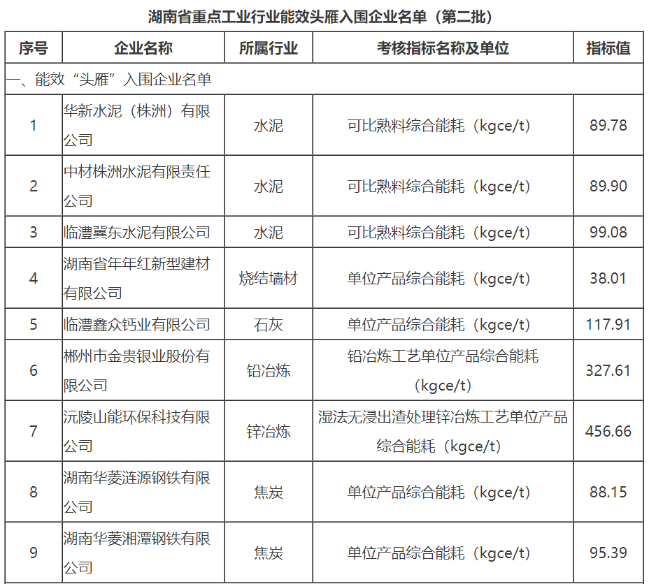 【大河财立方消息】11月1日,湖南省工信厅公示《湖南省重点工业行业能效头雁入围企业名单(第二批)》。华新水泥(株洲)有限公司等9家公司入围能效“头雁”企业;湖南煤化新能源有限公司等6家公司入围水效“头雁”企业;湖南华菱涟源钢铁有限公司等10家公司入围能源管理“头雁”企业。