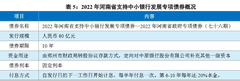 据悉,本次发行的一般债券为5年期,计划发行额度为32.1763亿元,用于道路、桥梁、学校等建设项目;专项债券为10年期,计划发行额度为80亿元,募集资金由郑州市财政局以转股协议存款方式,定向对中原银行补充其他一级资本。