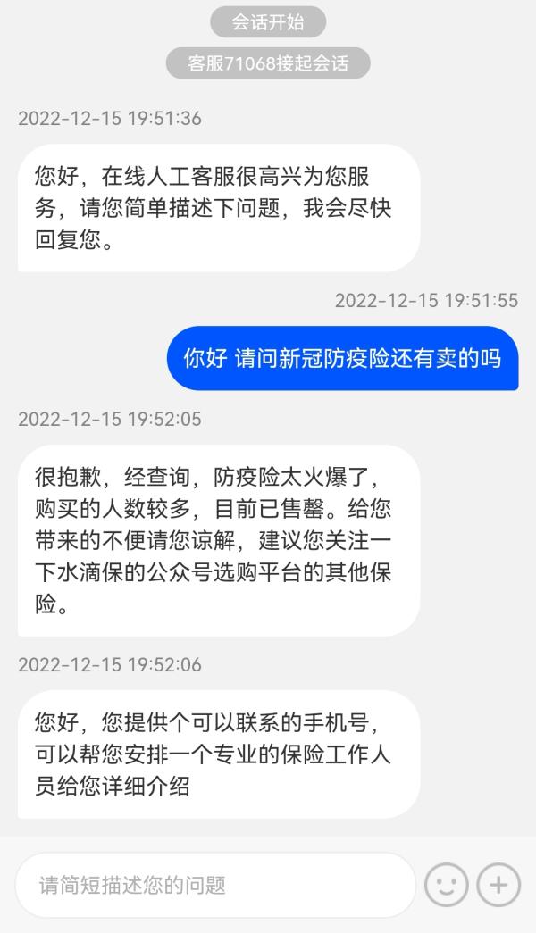 澎湃新闻注意到,此前销售的包括水滴保的新冠防疫险、华泰保险的新冠疫情保障险、紫金保险的新冠疫情险、太平财险畅无忧等多款“确诊即可申请赔付”的新冠保险产品,均已售罄或下架。