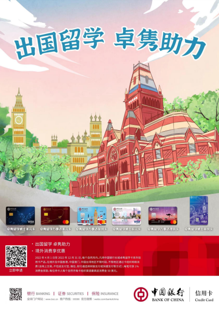 有留学生家庭的朋友,可扫描上方海报二维码,了解详情;也可前往就近的中国银行网点咨询。