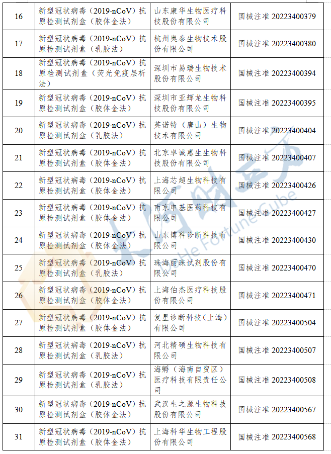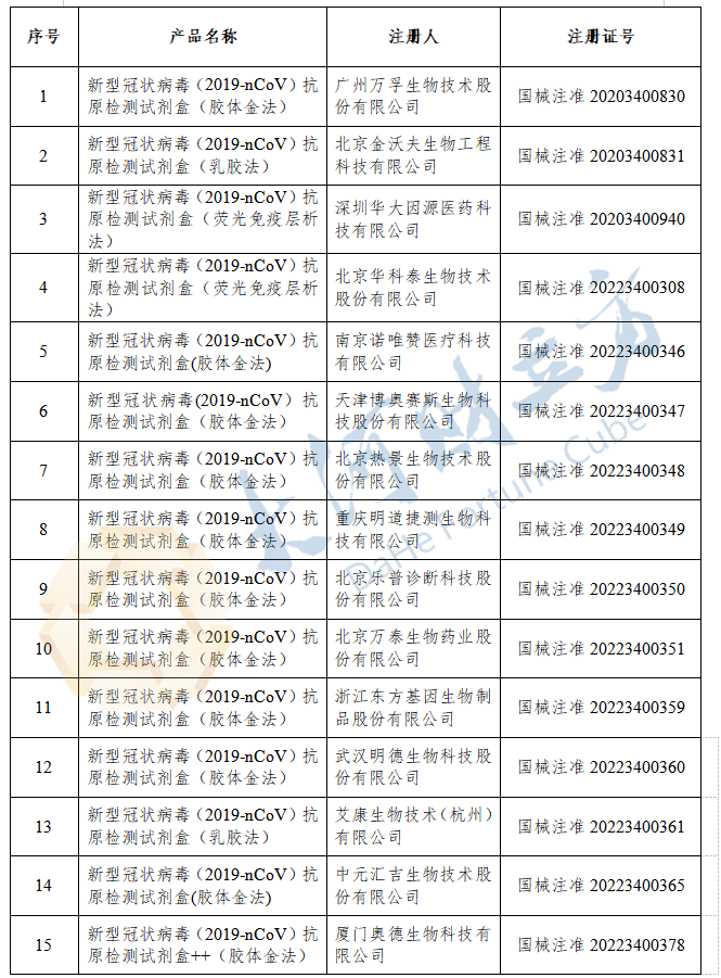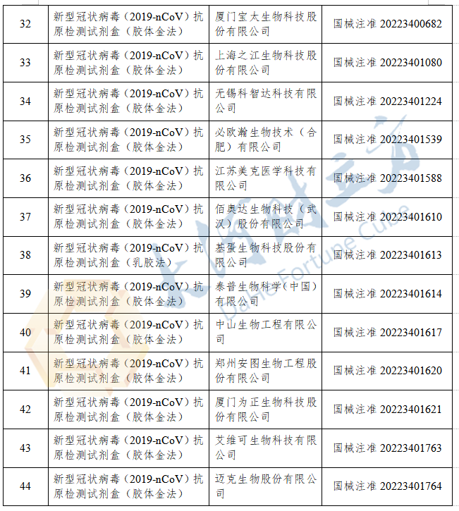 12月22日,经国家药监局审查,批准艾维可生物科技有限公司和迈克生物股份有限公司的2个新冠病毒抗原检测试剂产品。截至目前,国家药监局已批准44个新冠病毒抗原检测试剂产品。