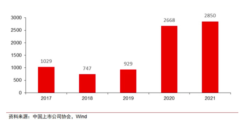 资本市场资源有效配置功能为高端制造业实体经济发展注入活力。自2017年以来,共有871家高端制造业公司通过IPO进行了融资,融资金额达2850亿元。特别是科创板的设立、实行注册制简化上市程序、降低企业融资成本等一系列政策扶持,为高端制造业企业提供了更符合企业禀赋特点的上市融资方式,进一步发挥了资本市场服务实体经济的作用。