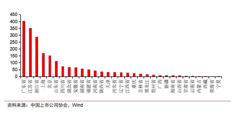 报告统计的2121家上市公司中,注册地在广东的最多,为403家,江苏、浙江、上海、北京紧随其后。河南位居第十二位。