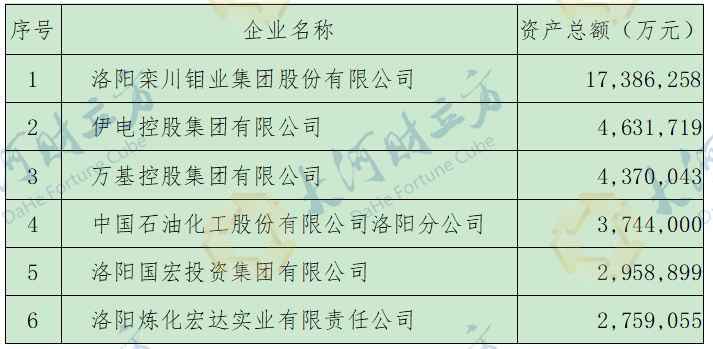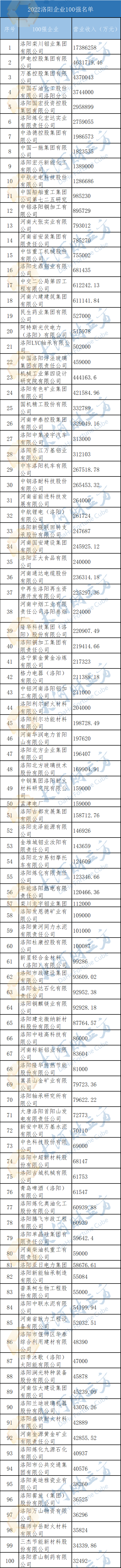 2022洛阳企业100强入围门槛3.25亿元。前三名为:洛阳钼业有限公司、伊电控股集团有限公司、万基控股集团有限公司。