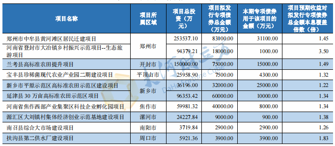 【大河财立方消息】1月3日,2023年河南省政府专项债券(一至十期)信息披露,拟发行总额为811.45亿元,用于960个项目。品种为记账式固定利率附息债券。