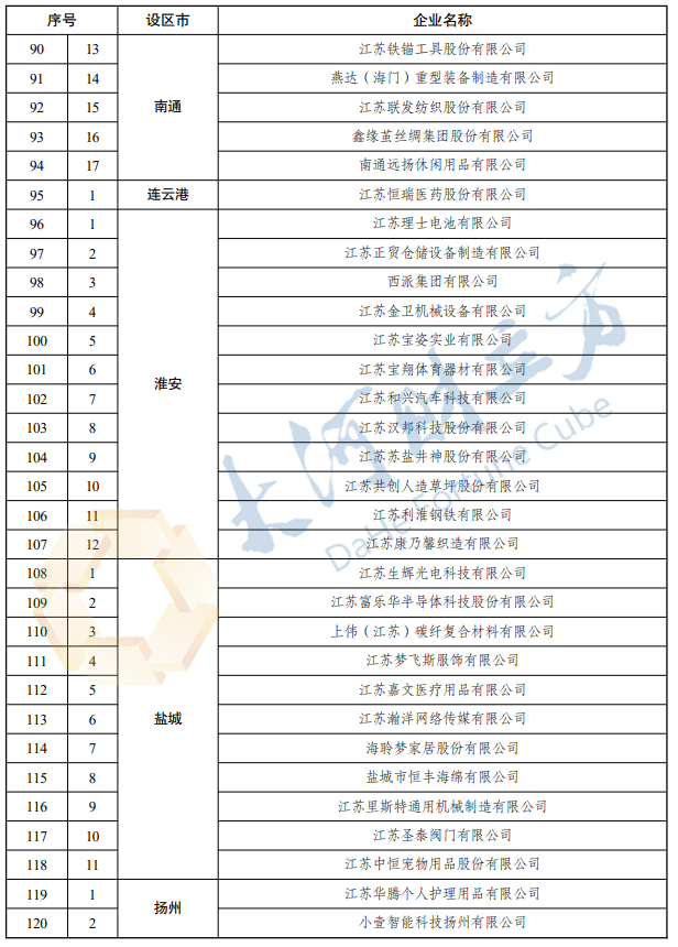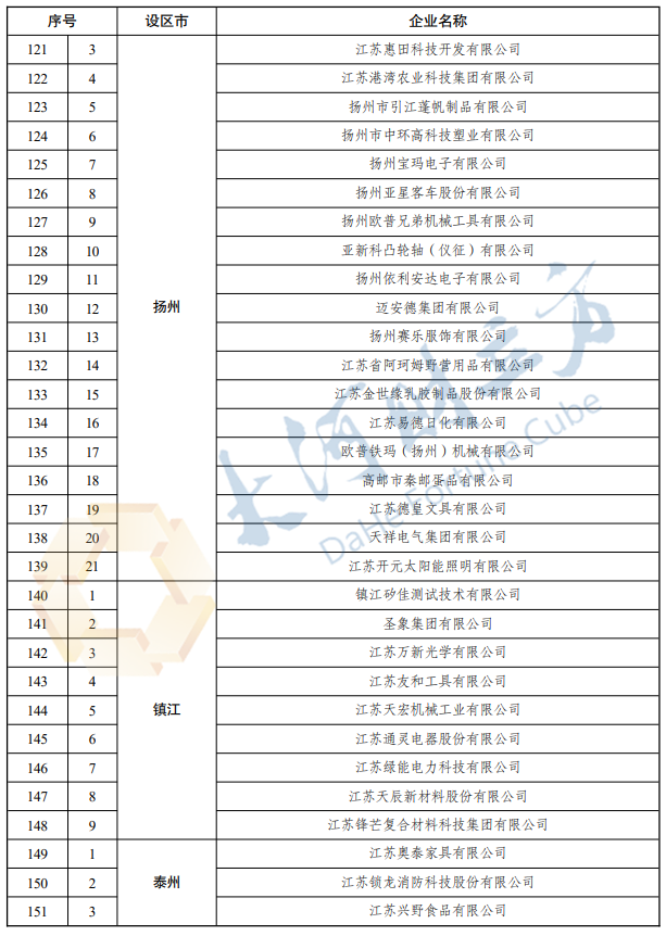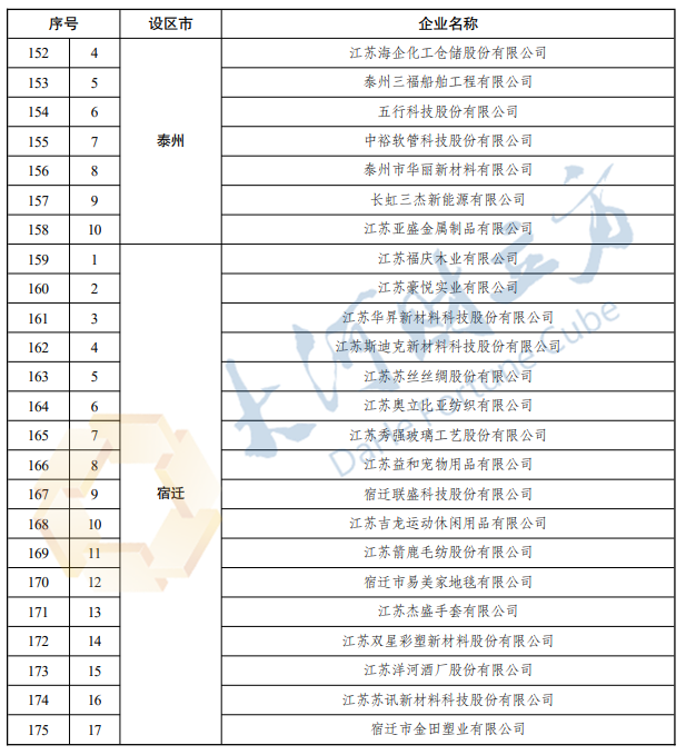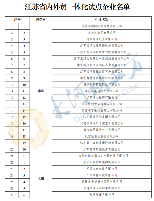 【大河财立方消息】1月5日,江苏省商务厅发布江苏省内外贸一体化试点企业名单的通知,共涉及175家企业。