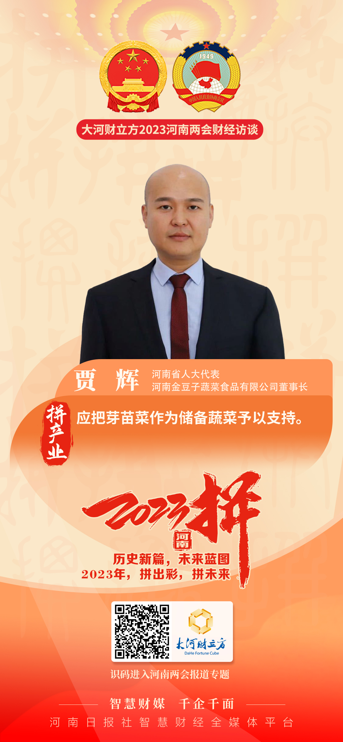 “河南在蔬菜种植和保供方面始终面临着一定的挑战,是每一个农业企业需要思考的问题。”1月15日下午,省人大代表、河南金豆子蔬菜食品有限公司董事长贾辉在接受大河财立方记者采访时表示。