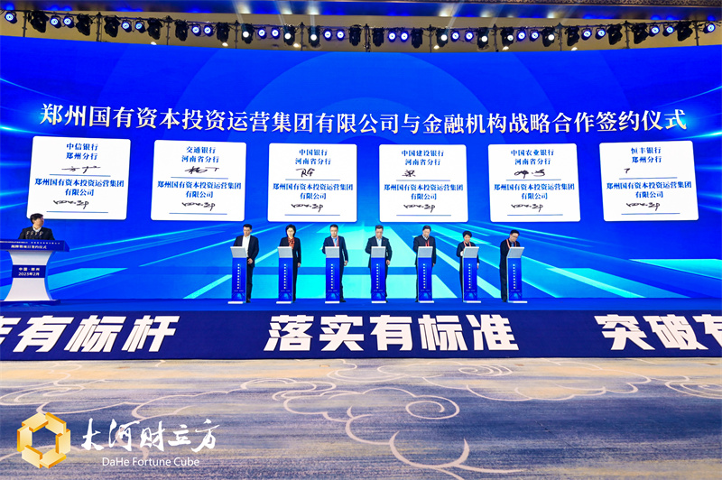 在揭牌仪式后的签约环节,郑州国投集团与中国建设银行河南省分行、交通银行河南省分行、中国银行河南省分行、中国农业银行河南省分行、中信银行郑州分行、恒丰银行郑州分行等金融机构战略签约。