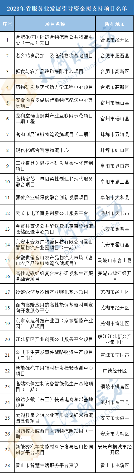 【大河财立方消息】2月13日,安徽省发改委公示2023年省服务业发展引导资金安排重点项目。