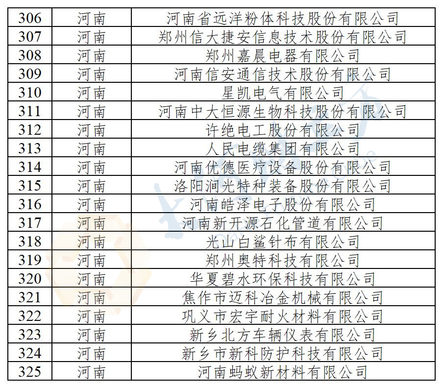 河南入选企业名单: