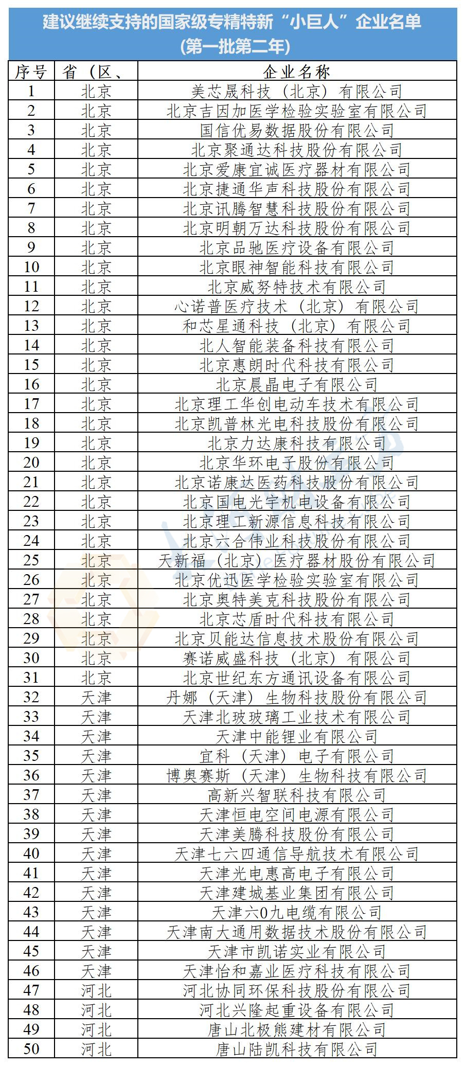 全名单:1.建议继续支持的国家级专精特新“小巨人”企业名单(第一批第二年)