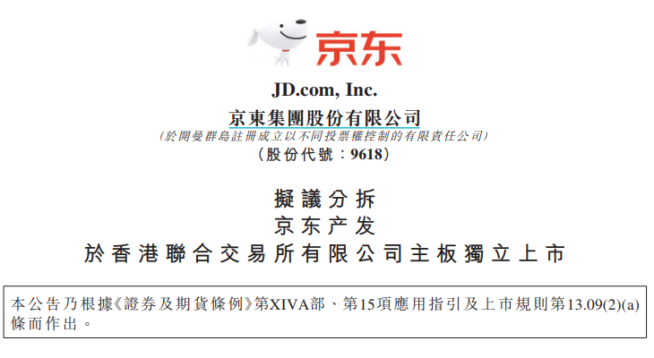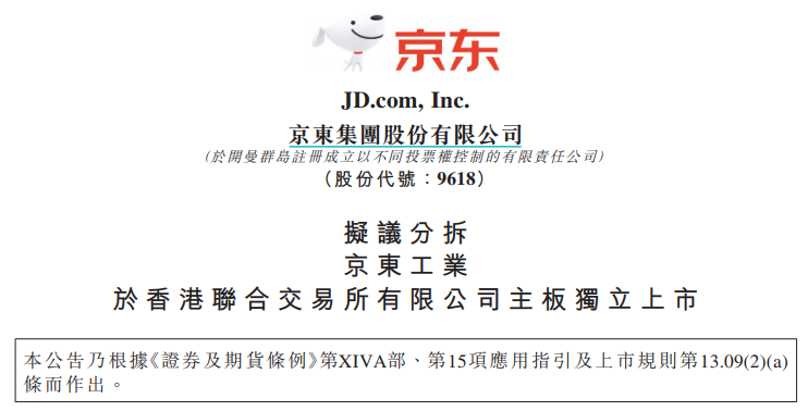 【大河财立方消息】3月30日,京东集团在港交所披露公告,拟分拆京东智能产发股份有限公司(以下简称京东产发)、京东工业股份有限公司(以下简称京东工业)股份于香港联交所主板独立上市。