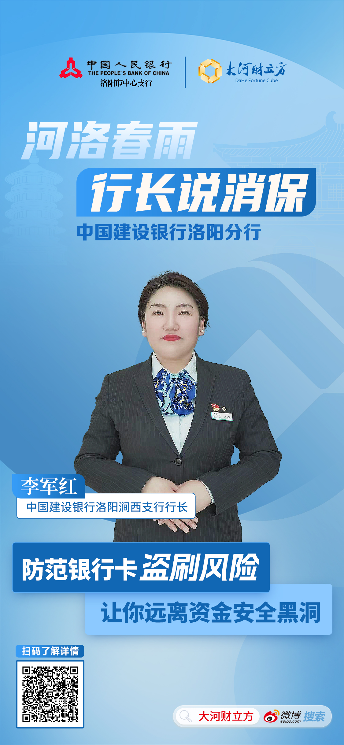 编者按|金融消费已融入人们生活各个方面,新产品新方式层出不穷,金融消费者权益保护也愈发重要。近日,大河财立方联合人行洛阳市中心支行启动“河洛春雨•行长说消保”主题宣传活动,通过洛阳辖内银行机构优秀分支行行长(负责人)讲解身边典型案例及介绍本行在消保方面的先进做法,引导金融消费者树立风险防范意识,掌握正确的金融消费维权手段,有效保护自身财产安全。