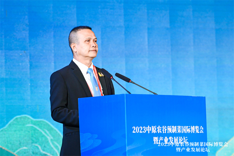 【大河财立方 记者 陈诗昂 文 朱哲 冉衡 摄影】4月10日上午9时,2023中原农谷预制菜国际博览会暨产业发展论坛在新乡市正式启幕。泰国农业与合作社部督察长猜瓦·尤塔坤在致辞中表示,今年是中泰建交48周年,也是中泰全面战略合作伙伴关系建立11 周年。长久以来,中泰两国在经贸往来、互联互通和产业合作等领域务实合作、成果丰硕。