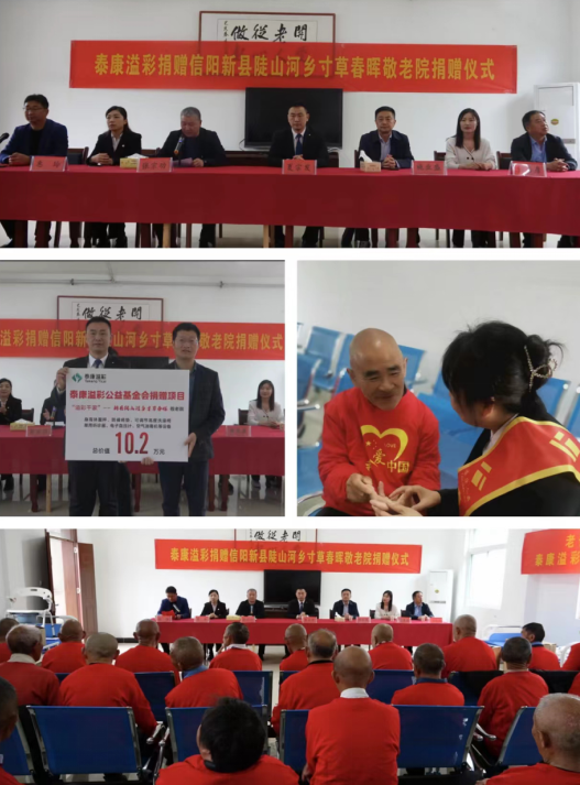 【大河财立方消息】4月13日,泰康“溢彩千家”公益项目正式落地信阳市新县,并在新县陡山河乡寸草春晖敬老院举行了捐助挂牌仪式,并向敬老院捐赠了总价值约10.2万元的适老化设备。