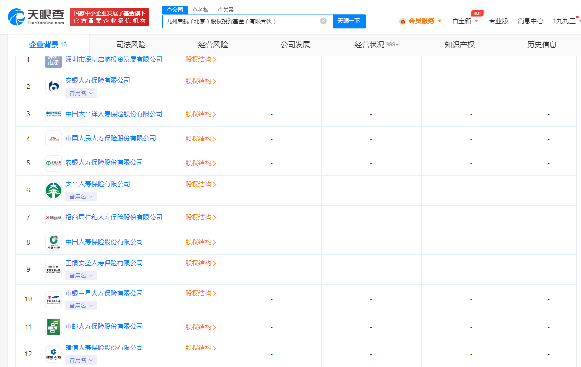 合伙人信息显示,该企业由招商局仁和人寿保险股份有限公司、中国太平洋人寿保险股份有限公司、中国人民人寿保险股份有限公司、农银人寿保险股份有限公司等共同出资。