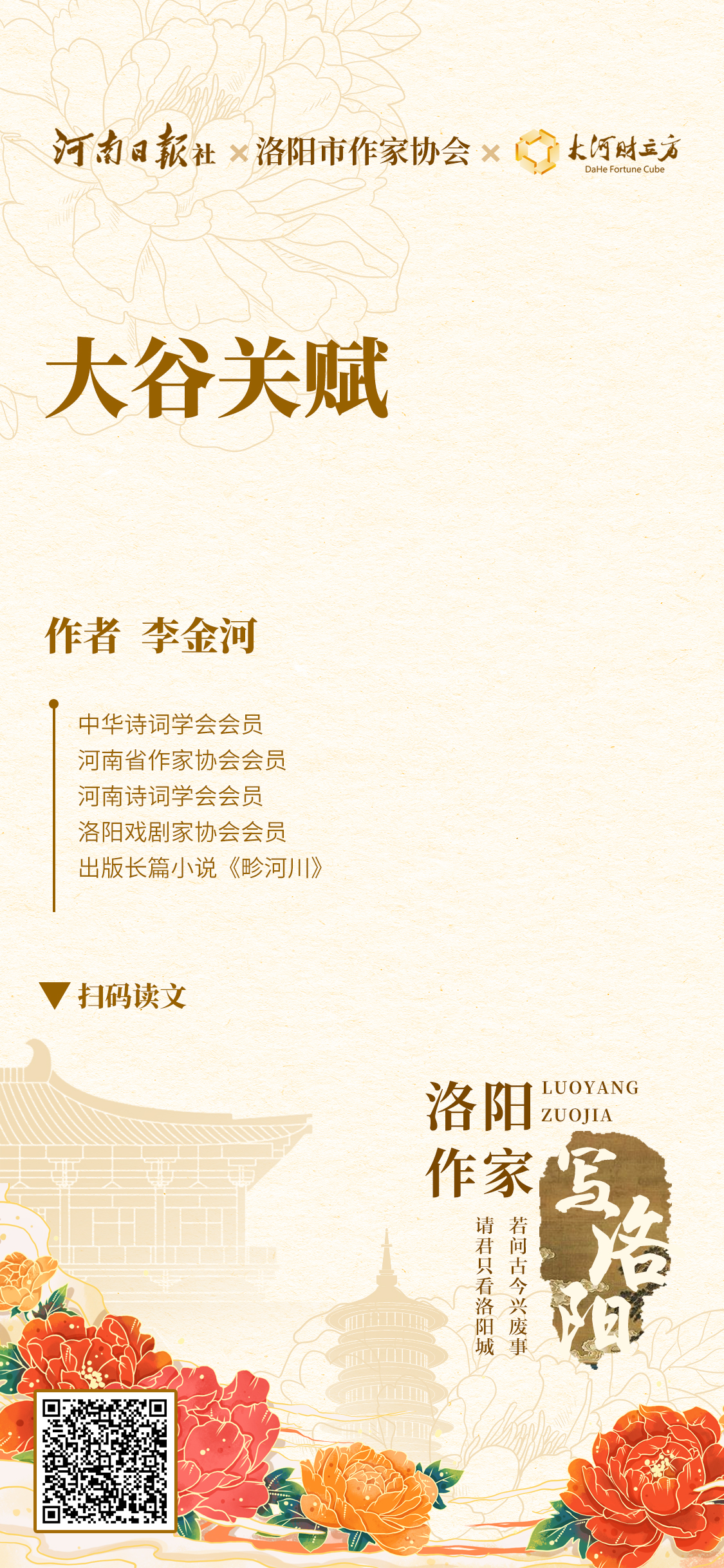 作者简介:李金河,中华诗词学会会员,河南省作家协会会员,河南诗词学会会员,洛阳戏剧家协会会员。文学创作涵盖诗词、赋、散文、小说、影视剧本、戏曲剧本等多种体裁。出版长篇小说《畛河川》,曾参与大型文献《千年帝都》编写。