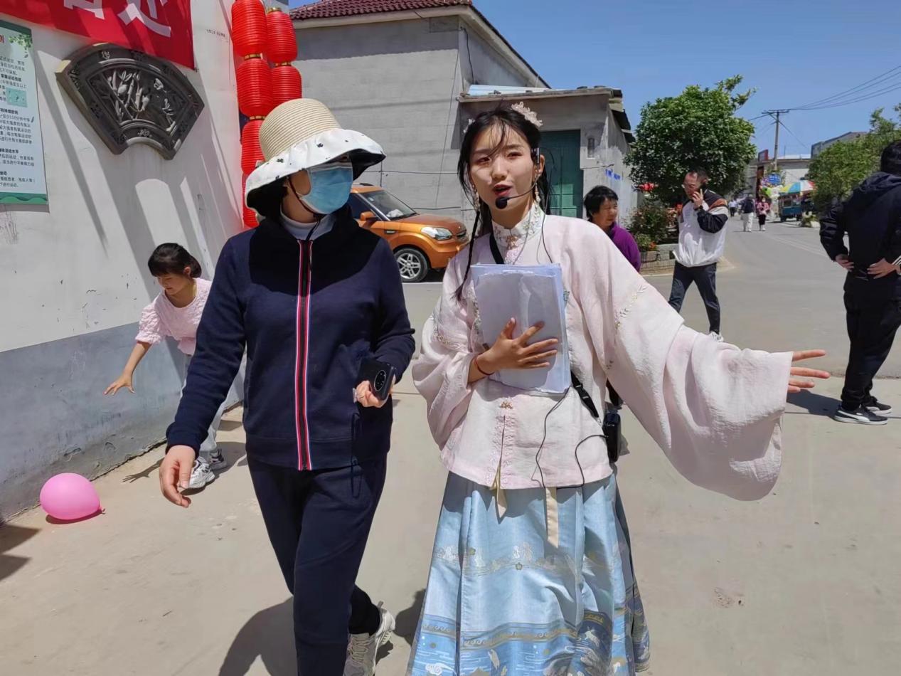 图一:“五一”假期首日,后寺村党支部副书记、书记助理张姣姣穿上汉服,为游客做向导服务
