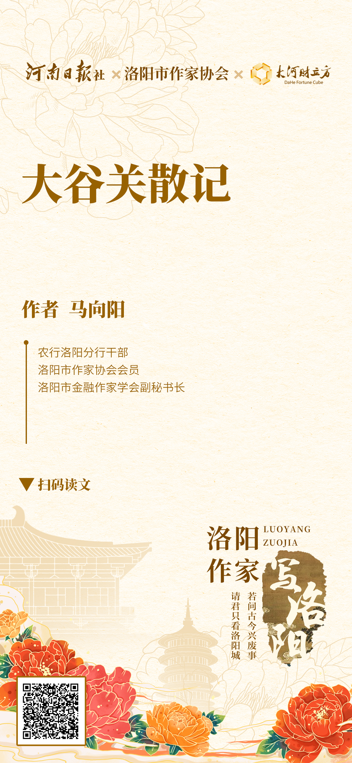 洛阳博物馆东侧的“聂泰路”跨隋唐洛阳城国家考古遗址公园的“九孔桥”上,一名骑行“驴友”正费力蹬车上行,桥南不远处红绿灯路口,他的几名骑友正在小憩。我走到跟前,问他们“骑遍全中国,冲刺十万关”是“客自何处来”?答曰:客是福建“客家人”。一路骑行从信阳北上,打卡“古义阳三关”后,过登封“轘辕关”走207国道,骑行洛阳特意来寻祖“打卡”大谷关的。又是大谷关!