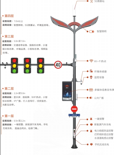 河南垂天研发制造的智慧合杆,搭载环境监测、监控、5G基站、一键报警、充电桩、显示屏等功能,能满足在多场景中的应用,同时从模块化、即插即用进行设计,可实现产品后续功能的延伸拓展,加上硬件数据采集+大数据中心数据存储和计算+软件平台数据应用,可实现城市鲜活数据的采集、分析、应用。