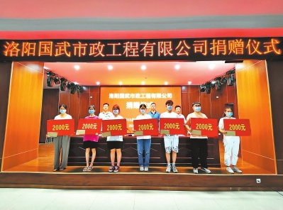 这一天,洛阳国武市政在伊川县滨河高级中学举行爱心助学捐赠仪式。郭武军向滨河高中顺利考入大学的6名贫困学子每人捐赠2000元助学金,鼓励他们进入大学后刻苦学习,化困难为动力,用知识改变命运。