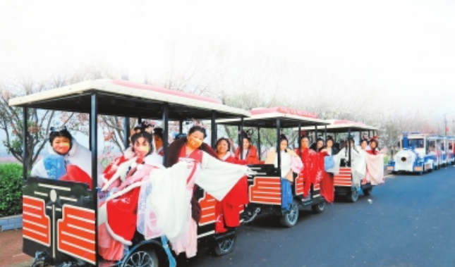 新野县白河滩湿地公园内郁金香姹紫嫣红;新甸铺镇津湾村十里桃花争艳;独具特色的新野板面吸引来万千游客;纺织服装产业全产业链活力十足……