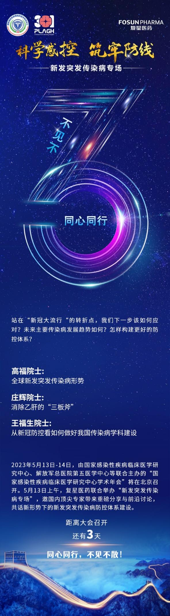 2023年5月13日—14日,由国家感染性疾病临床医学研究中心、解放军总医院第五医学中心等联合主办的“国家感染性疾病临床医学研究中心学术年会”将在北京召开。5月13日上午,复星医药联合举办“新发突发传染病专场”,邀国内顶尖专家共话新形势下的新发突发传染病防控体系建设。
