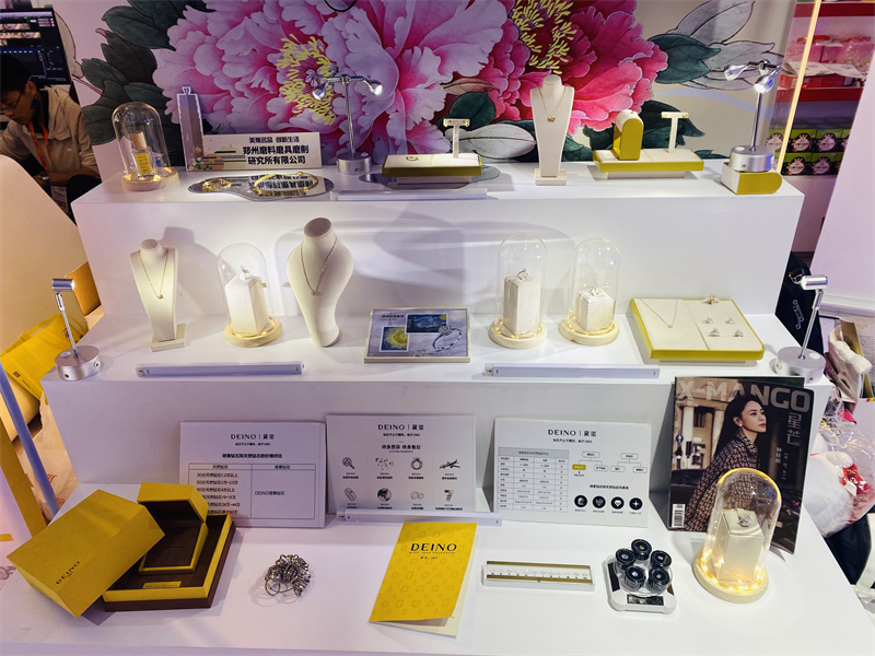 此外,郑州三磨所展示的钻石珠宝引来不少爱美人士试戴。据了解,一枚1克拉的培育钻石戒指,价格不到2万元,而同样大小的天然钻石戒指要10万—15万元。该公司工作人员佘凤芹介绍,为完善产业链条,促进行业发展,郑州三磨所专门成立了高端培育钻石珠宝品牌,专注于异形钻产品的设计研发。