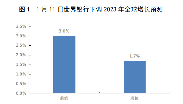 1月11日,世界银行发布的最新一期《全球经济展望报告》指出,在通胀高企、利率上升、投资减少的背景下,加之俄乌冲突,全球增长正在急剧放缓。报告将2023年全球增长从2022年6月预测的3%大幅降至1.7%,比预测前值下调1.3个百分点。