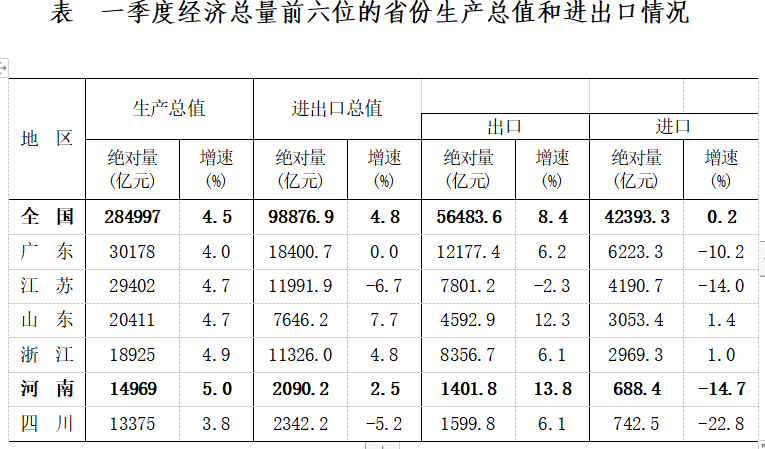 2020以来,全球经济受疫情防控和通货膨胀等影响,仍处于收缩阶段。我国经济大省特别是沿海省份受到较大冲击,发展参差不齐。一季度,经济总量前六位的经济大省中有两个GDP增速低于全国,广东、四川分别低于全国0.5、0.7个百分点。
