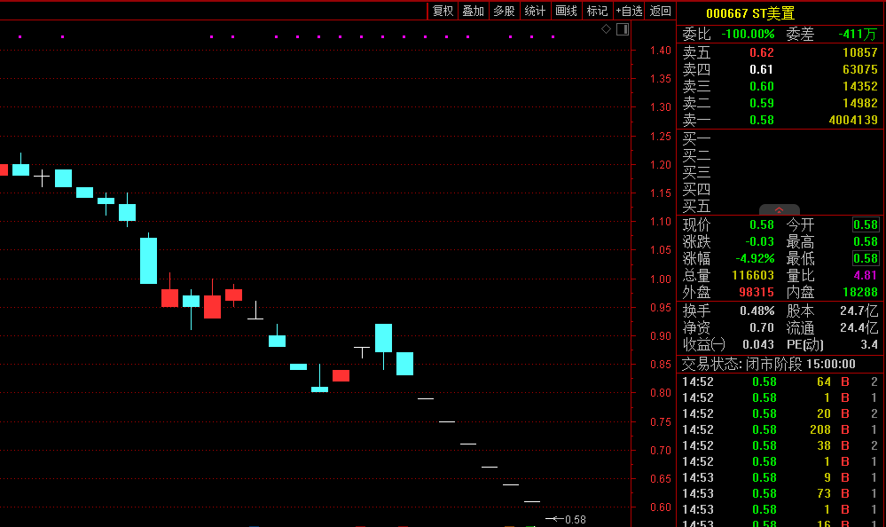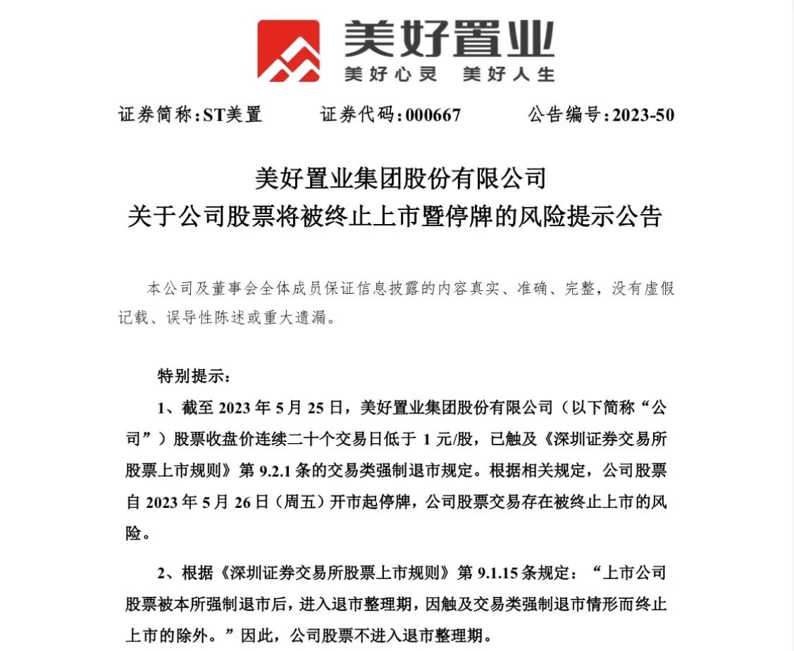 尽管紧急启动增持计划,仍无法挽回股价连续跌停的整体颓势。ST美置(000667)5月25日晚间公告,公司股票自5月26日开市起停牌,公司股票交易存在被终止上市的风险。