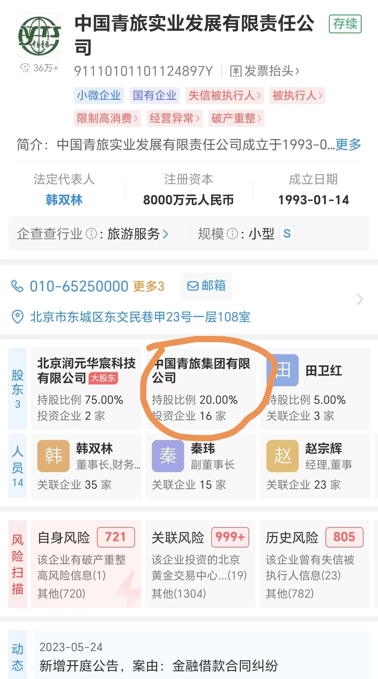 事发后,伞翔宇火速退出了中青旅实业,之后中青旅实业大股东润元华宸的实控人也发生了变化,2018年底,中青旅集团在北京产权交易所公开转让其持有的中青旅实业20%股权,转让底价为199.68万元。企查查最新数据显示,中青旅集团依然持有中青旅实业20%股权。