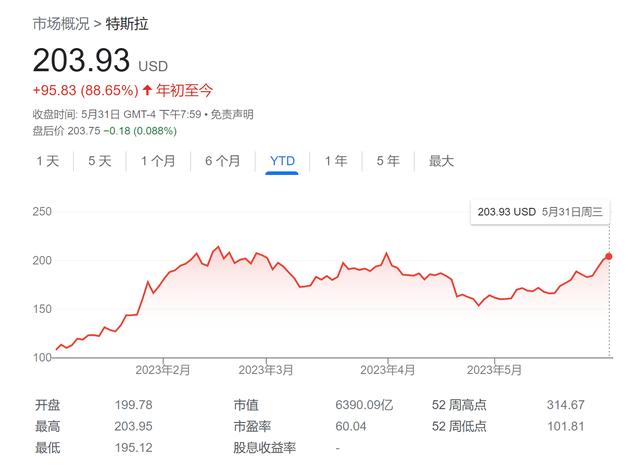 截至周三美股收盘,特斯拉股价涨1.38%,报203.93美元,今年迄今的涨幅已达88.65%。得益于特斯拉股价暴涨,马斯克今年财富增长超过553亿美元。