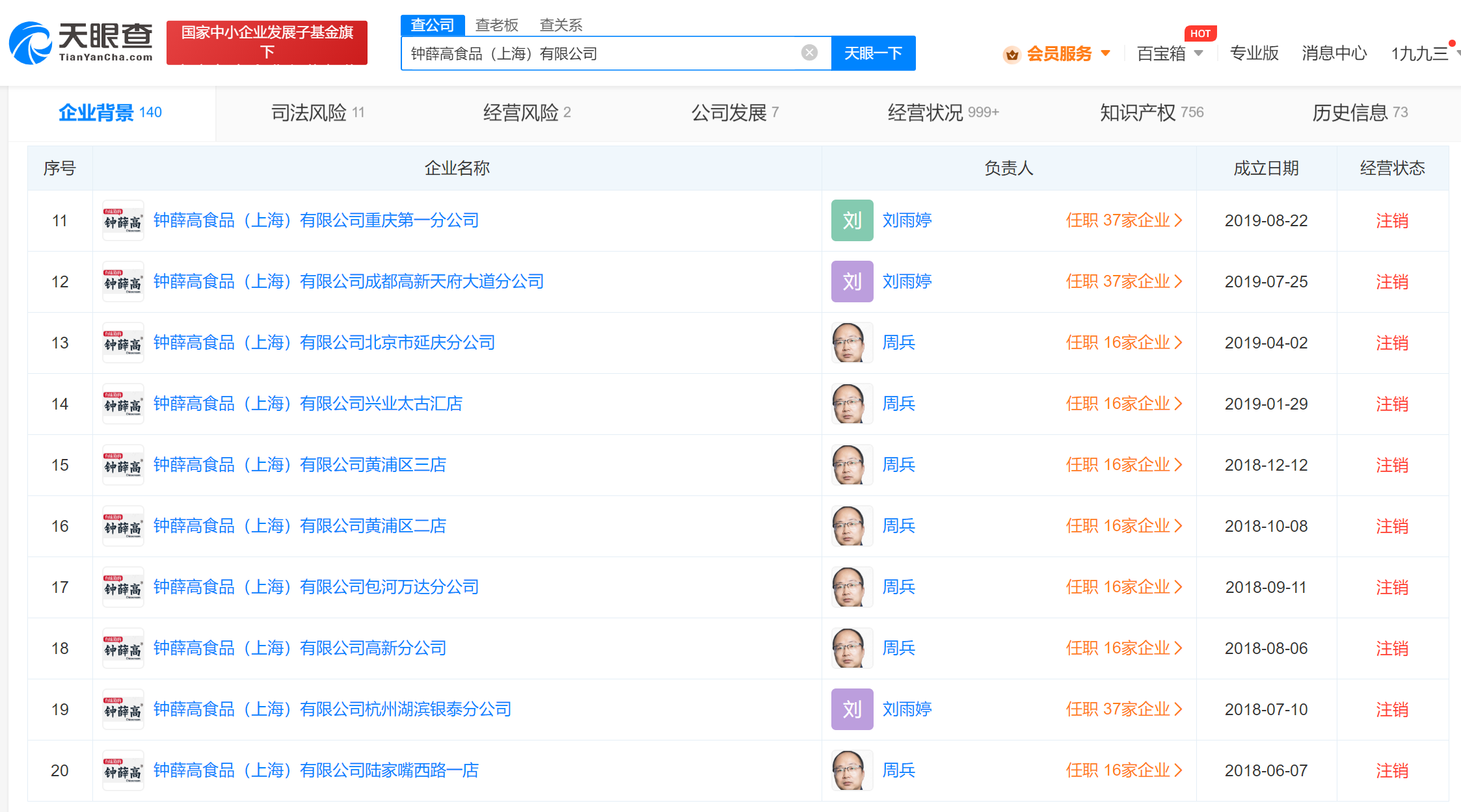 值得一提的是,随着上述分公司注销,钟薛高品牌主体公司钟薛高食品(上海)有限公司21家分支机构均已显示为注销。对外投资信息则显示,钟薛高食品(上海)有限公司持股企业有13家,其中5家已注销。