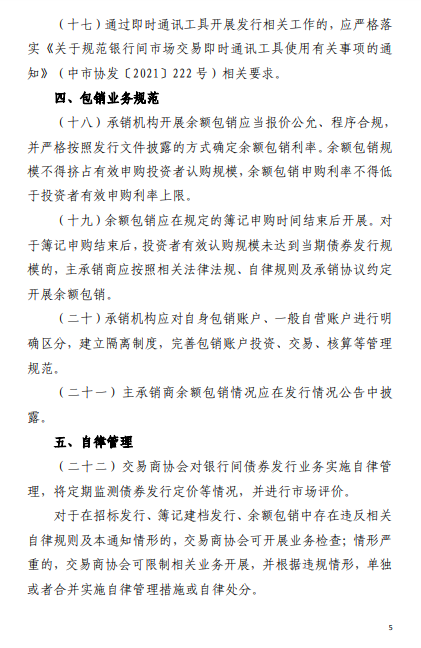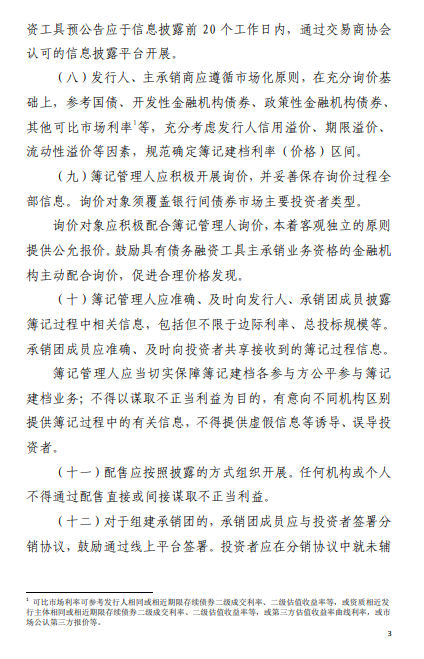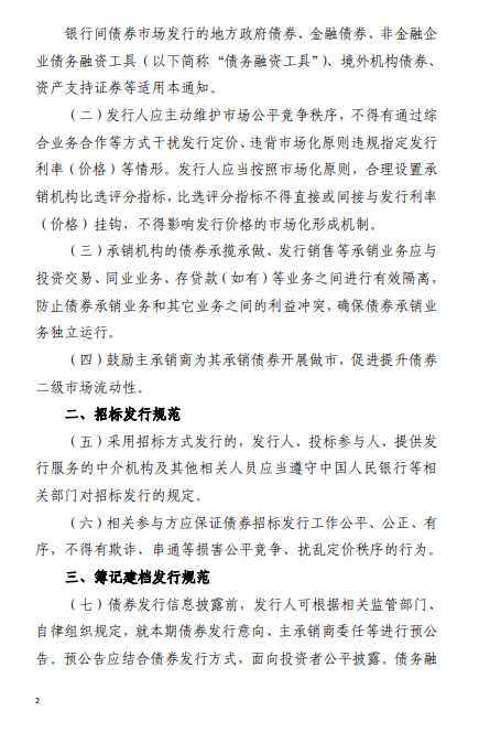 《通知》就银行间债券市场招标发行、簿记建档发行、包销业务等提出规范要求: