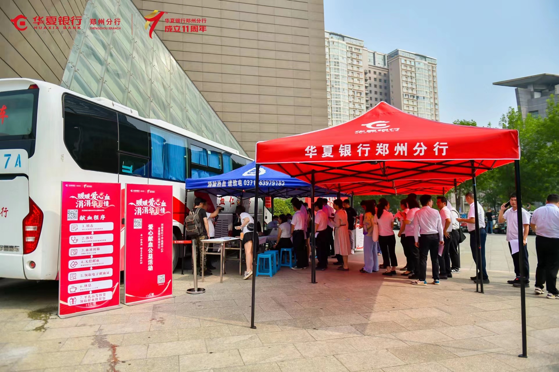 2023年6月21日,华夏银行郑州分行联合河南省红十字血液中心,开展“暖暖爱心血 涓涓华夏情”爱心献血公益活动。当天,该行88名干部职工累计献血28000毫升,用实际行动向社会彰显了华夏银行的担当与奉献。