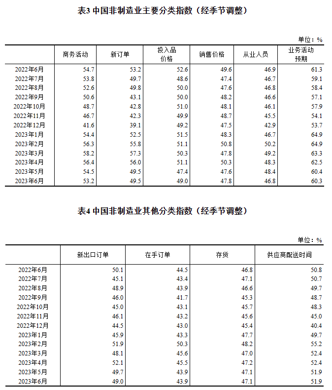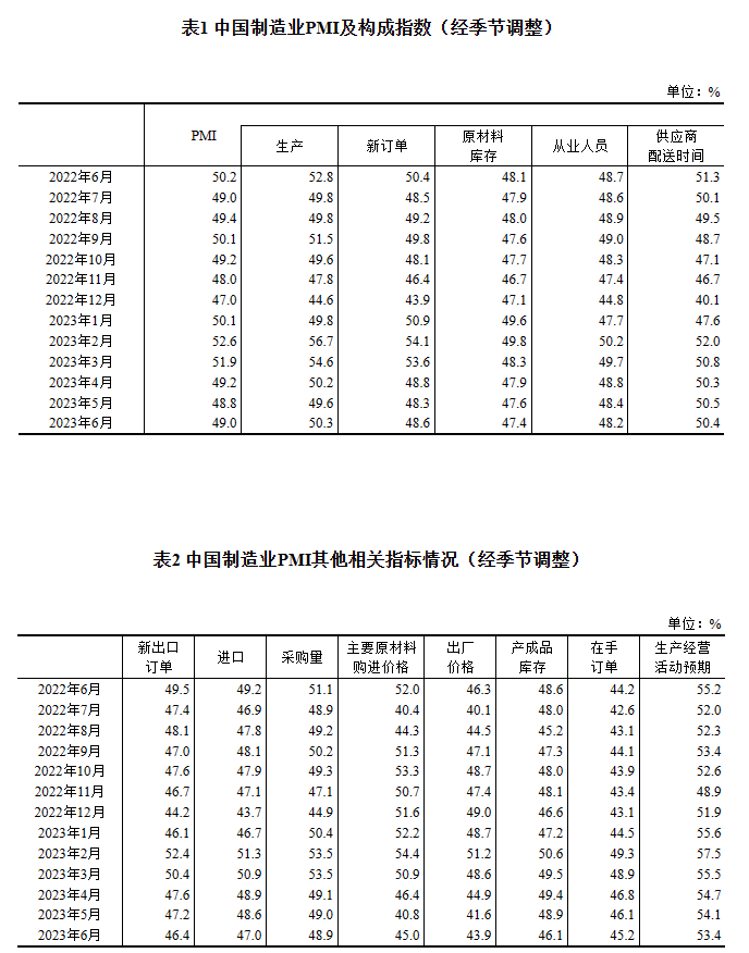 【大河财立方消息】6月30日,国家统计局公布2023年6月中国采购经理指数运行情况。