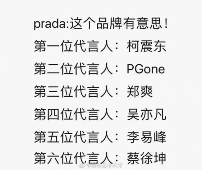 6月26日,与蔡徐坤一同上热搜的,还有他代言的Prada。