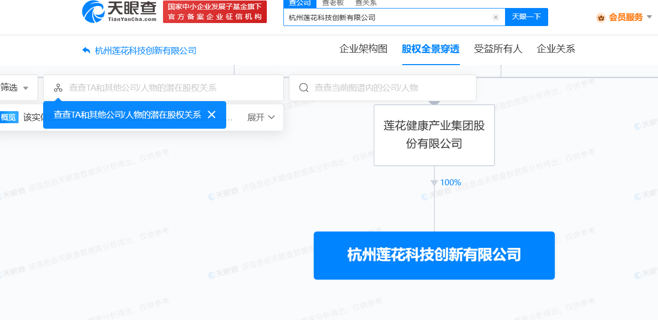 股权全景穿透图显示,该公司由莲花健康(600186)全资持股。