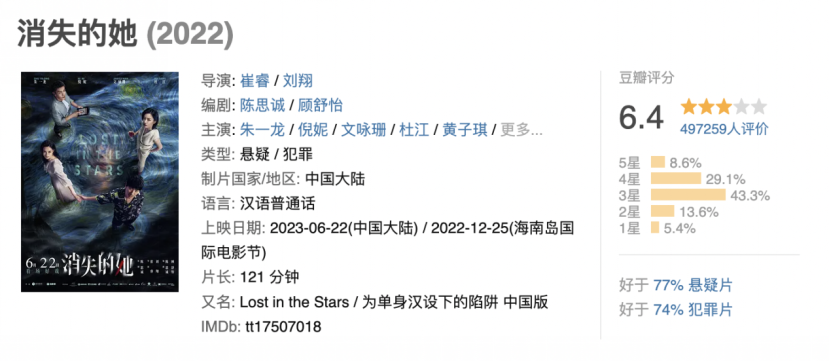 还没进入真正的暑假,爆款影片就已经出现了——《消失的她》票房目前已逼近29亿元。