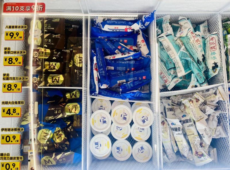 “10支九折、第2支1元、单支2元……”折扣超市店长跟记者说,“店里本身主打的就是价格优势,雪糕也会比其他商超便利店更便宜些,比如说10支九折的活动这段时间非常受欢迎,一天能卖出300根左右,每天都会补充进货。”