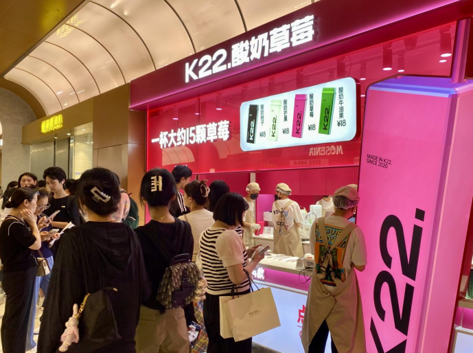 随着茉酸奶定价事件,现制酸奶饮品品类的关注度也不断上升。在门店端,现制酸奶饮品品牌流量也不小。大河财立方记者先后走访了熙地港、正弘城等购物中心,茉酸奶、一只酸奶牛、K22.等品牌在商场集中开店,晚餐消费高峰期,不乏排队购买现象。一门店工作人员告诉记者,周末、节假日期间,门店每天销量大概有300单。