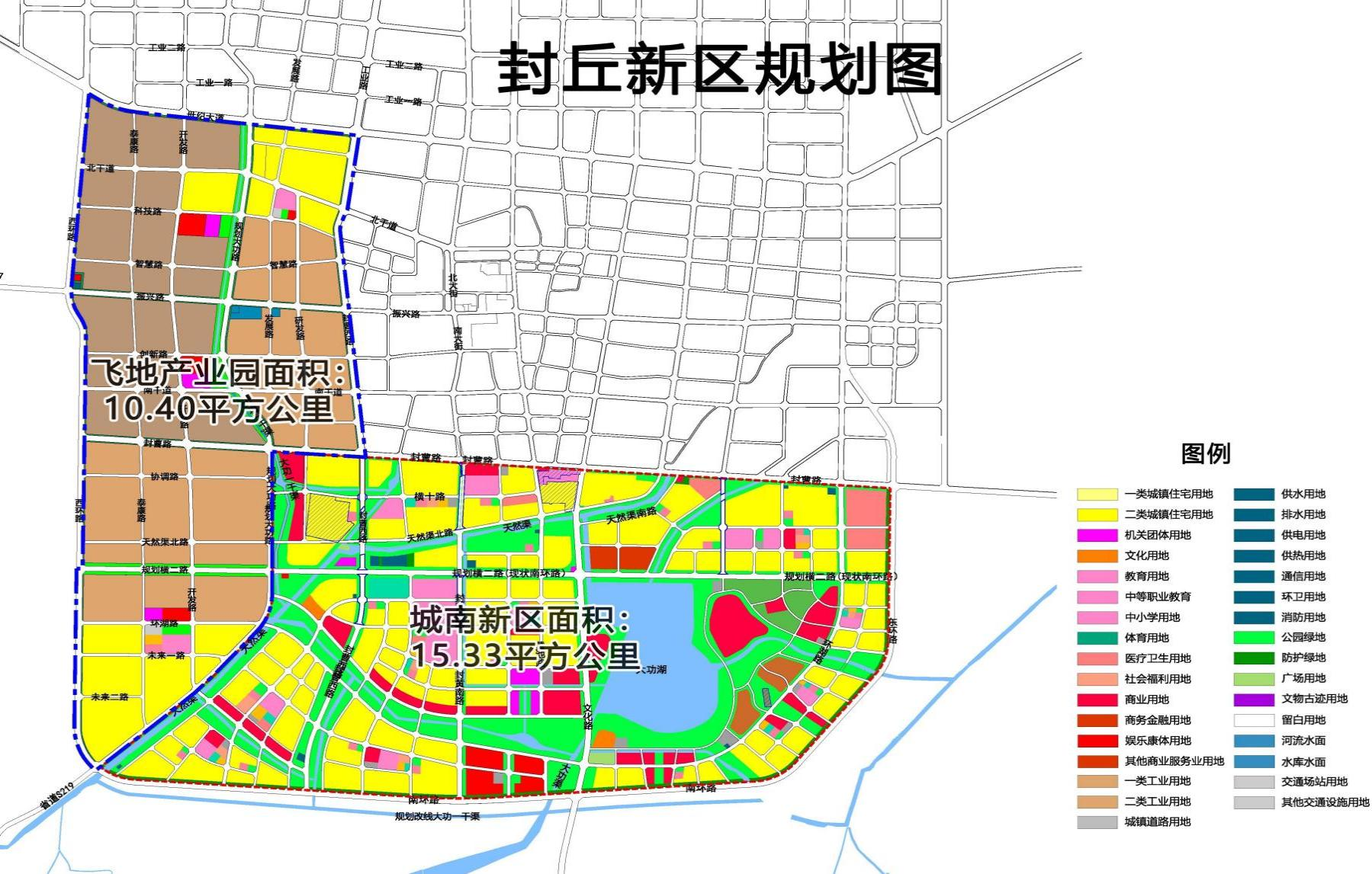 封丘县城建设的重点区域为封丘新区,主要包含封丘县开发区长封飞地产业园和城南新区。其中长封飞地产业园规划面积10.40平方公里,城南新区规划面积15.33平方公里。