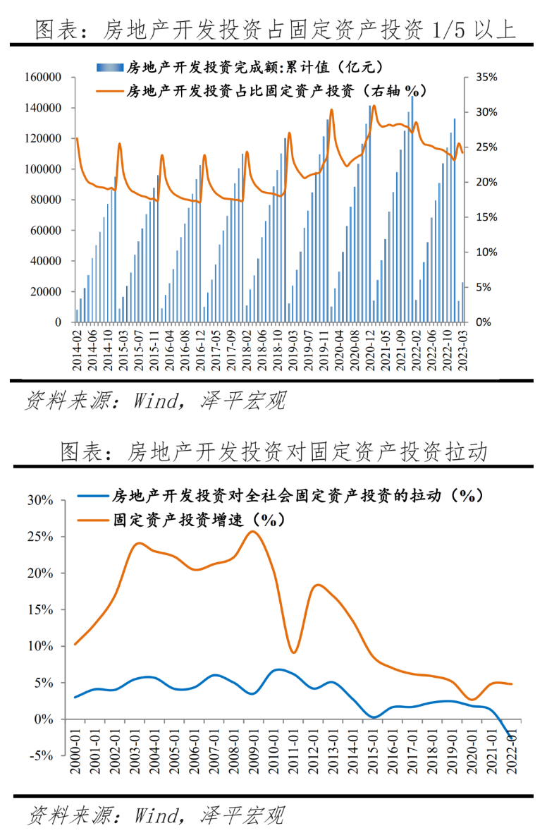 从房地产开发投资看,2022年房地产开发投资13.3万亿元,受疫情及房地产周期影响,比上年下降10%,但仍占固定资产投资的22.93%。房地产开发指房地产开发企业本年完成的全部用于房屋建设工程、土地开发工程的投资额以及土地购置费等的投资,属于固定资产投资的统计范畴,进而构成GDP固定资本形成,说房地产是国民经济的重要支柱毫不为过。