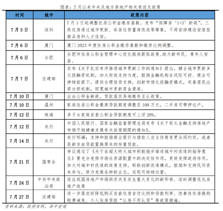 7月24日,二季度会议提出,适应我国房地产市场供求关系发生重大变化的新形势,适时调整优化房地产政策。