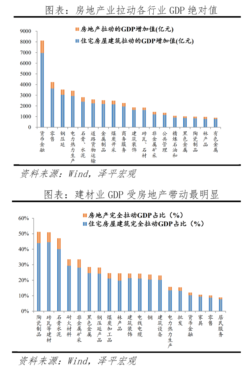 房地产通过投资、消费既直接带动与住房有关的建材、家具、批发等制造业部门,也明显带动金融、商务服务等第三产业。
