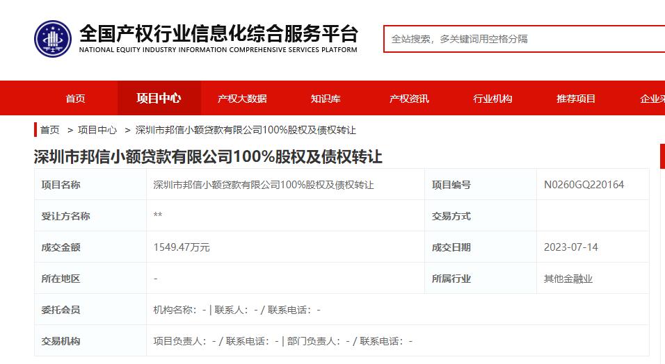 截至目前,东鹏饮料公司公告中并未披露关于收购邦信小贷公司事项,不过,记者在全国产权行业信息化综合服务平台查询发现,邦信小贷公司的转让成交日期为2023年7月14日,成交价格为1549.47万元。