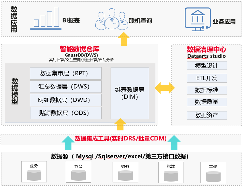 本项目由河南农担公司和华为云双方共同组建技术团队,以公司季度经营分析会的实际场景需求为切入点,按照贴源层、明细层、汇总层、集市层四层数据模型架构设计,先后完成全并行MPP架构的数据仓库、数据治理中心、数据湖探索等湖仓一体数据底座的搭建,基于实际业务的全域数据入湖,业务数据与应用系统的解耦、数据脚本开发、批量作业调度等,实现办事处、公司、产品、地域、银行等7个子业务域的指标梳理,并完成季度、年度、时点等三个维度241个业务指标建模,维度模型、事实模型、过程模型、汇总模型等52个数据模型设计,沉淀过程脚本131个,过程数据表单95张,技术资产、业务资产2502个,输出业务报表69张,并发布了9个实时API数据服务,数据准备时间由30天缩减至1天以内,数据分析时效性由天级提高到分钟级,数据准确率达到100%,人力成本节省90%以上。