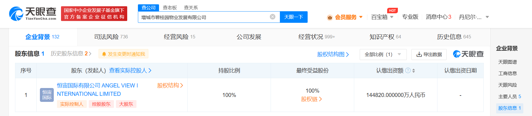 该公司成立于2000年9月,法定代表人为杨文杰,注册资本约14.48亿元人民币,经营范围含房地产开发经营、农业园艺服务、自有房地产经营活动、房屋租赁等,由恒宙国际有限公司全资持股。