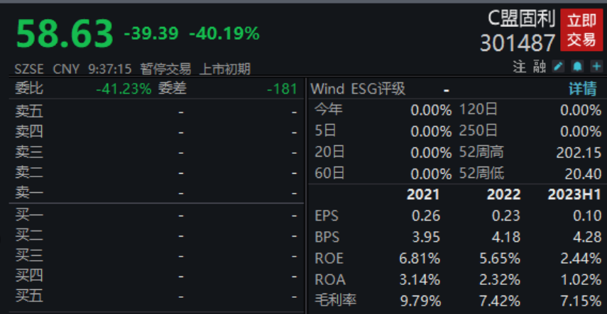 8月10日开盘,C盟固利低开超过50%。至9时37分,C盟固利盘中临时停牌10分钟,跌幅40.19%。